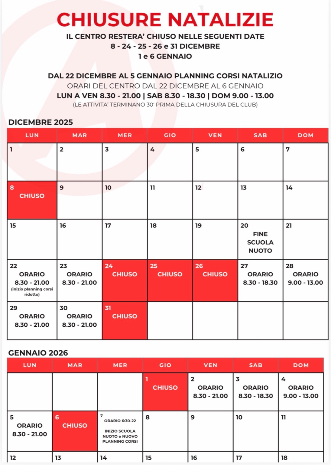 Consulta gli orari e le chiusure del periodo natalizio!