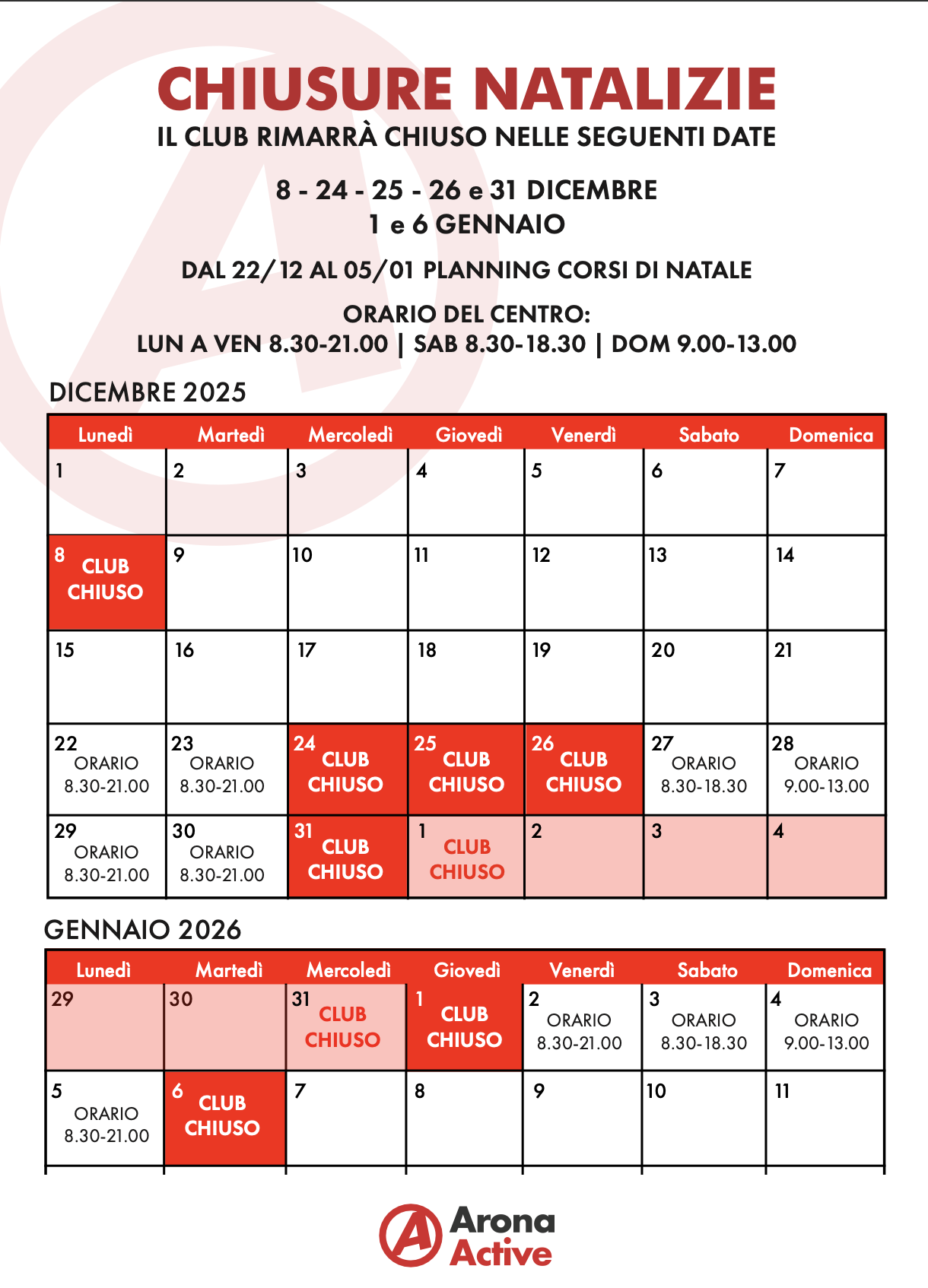 Consulta gli orari e le chiusure del periodo natalizio!